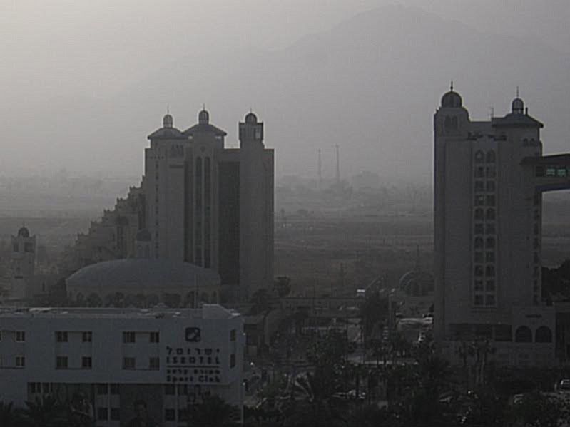 Было раннее утро. На Эйлат то ли надвигалась то ли уходила очередная пыльная буря. Две высоченные гостиницы образовав ворота в город безразлично смотрели на то как песок и ветер гуляют туда обратно.
